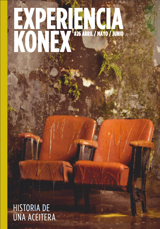 Historia de una aceitera fue un trabajo Aniversario para la revista Experiencia Konex En el cual nos pidieron representar la unión entre los orígenes del predio Konex, el cual original mente fue una Fabrica de aceite y la actualidad como centro de espectáculos. en este trabajo tuve el agrado de trabajar Con Santiago Goria un increíble Diseñador gráfico.